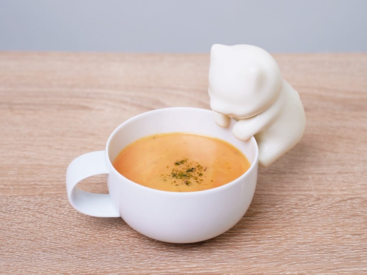 Robot kedi yavrusu, her türlü bardak, kase ya da kapta kullanılabilecek esnekliğe sahip. Patileri, yemekleri bile soğutabileceğiniz şekilde tasarlanmış. Ayrıca, masanızın üzerinde bile durabilir!