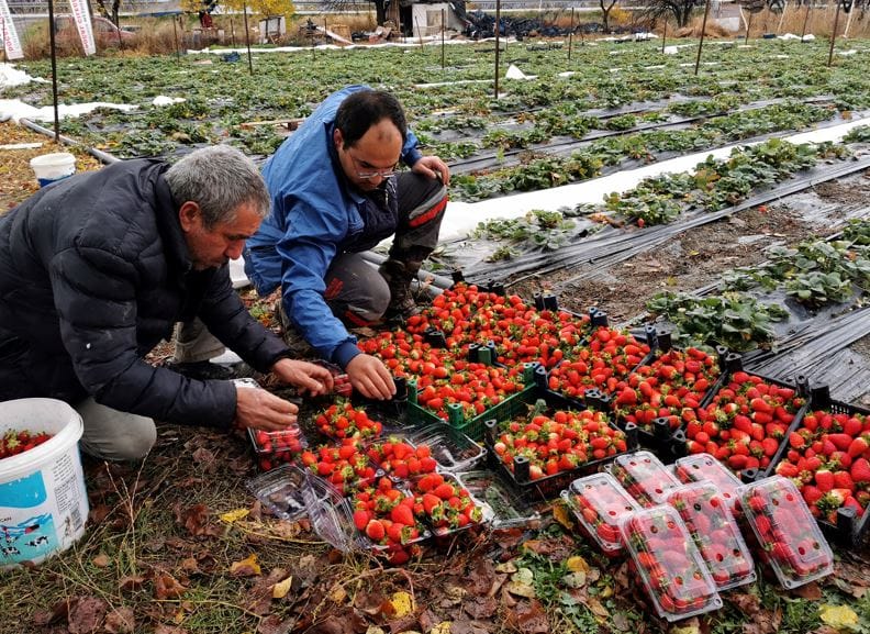 Oğlu ile birlikte çilek üreticiliği yapan Yavuz Karatepe de kasım ayında çilek hasadı yapmaya devam ettiklerini anlatarak, “Şu anda Munzur ve Keşiş Dağlarına kar yağdığı halde biz Üzümlü ilçesinde kasımın ortasında çilek hasadı yapıyoruz. Bizim için çok güzel bir duygu. Yazın çilek toplamak çok güzel ama kasım ayında toplamak hepsinden daha güzel.” ifadelerini kullandı.