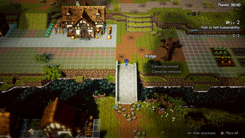Octopath Traveler 0, yukarıda belirttiğim gibi şehir inşa etmeye yönelik bir mini oyun özelliği barındırıyor. Köyün yeniden canlandırılması işi otomatik sahnelerle kısıtlanmamakta ve oyuncunun zevkine bırakılan yeni tasarım ve bina seçenekleri sunulmakta. Oyun burada, karmaşık bir yaşam simülasyonuna dönüşmese de her yeni karakterin sunumu, savaşlarda yardımcı olacağı eşyaların üretimi ve deneyim kazanmayı arttırıyor.